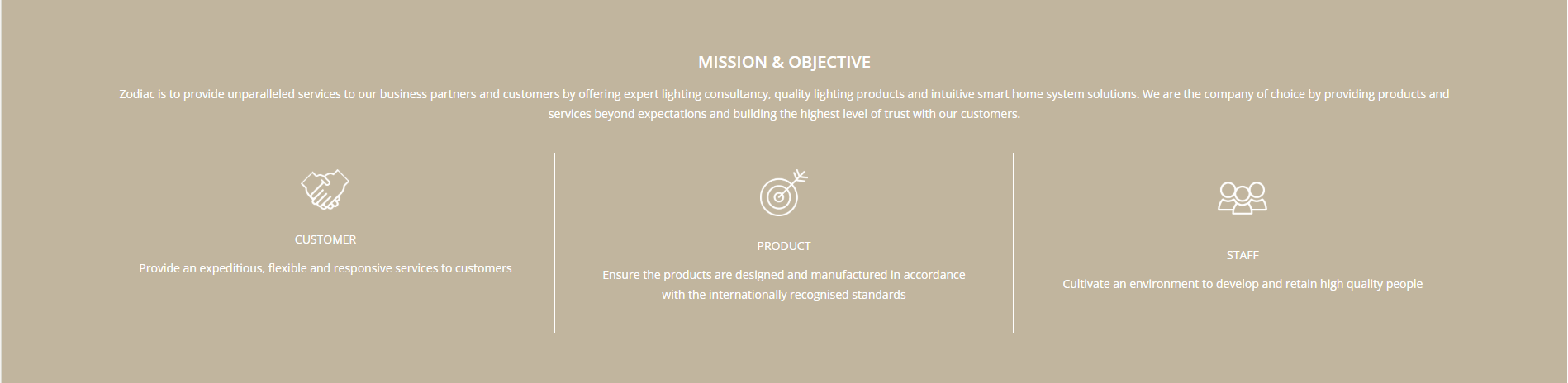 Zodiac Lighting Limited was incorporated in Hong Kong on 1st October 1988. With over a century of combined experience in the lighting industry, the founders came together and led the company to success at its present days.